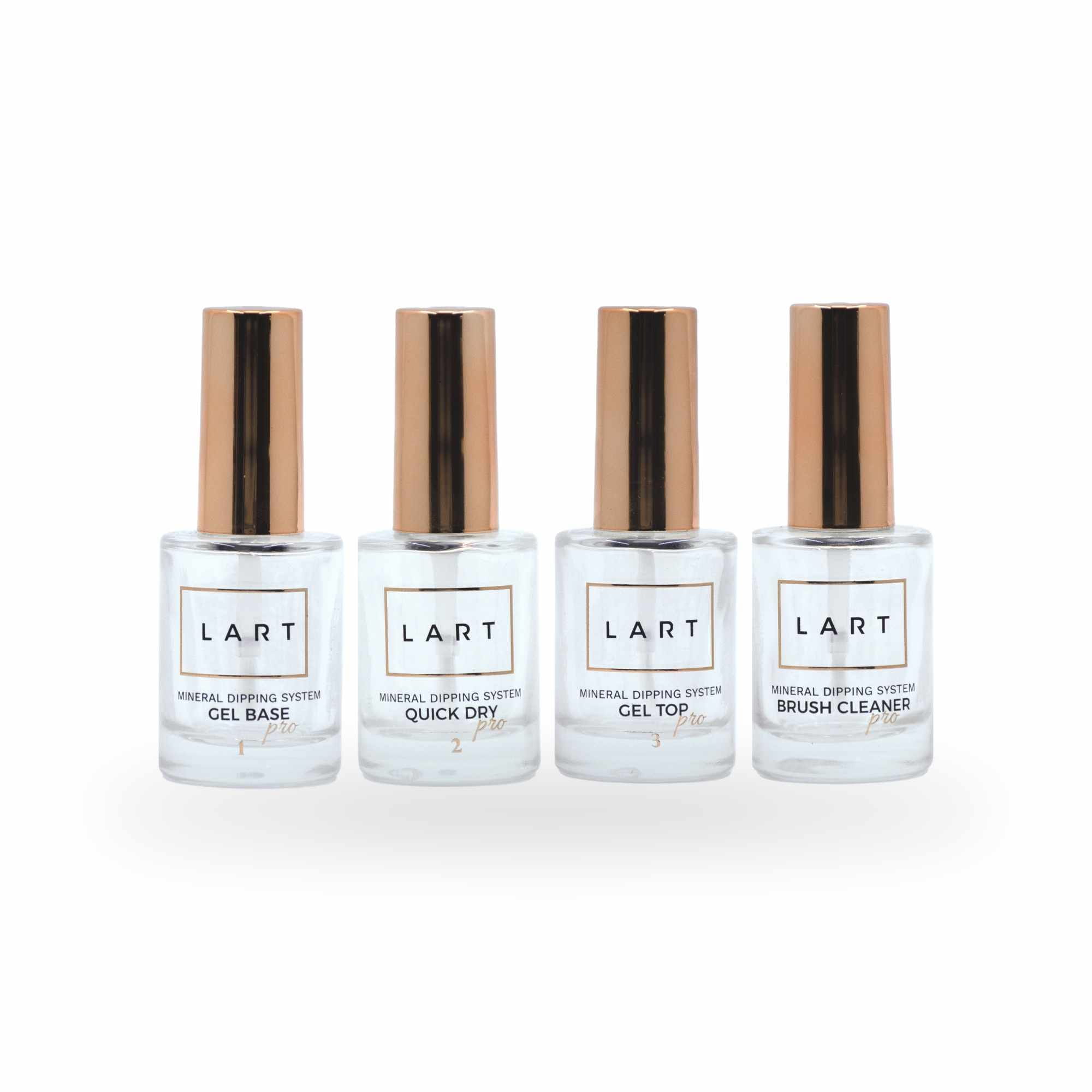 Introducing the LART Liquid Products Set, the ultimate collection of liquid essentials for achieving flawless nails with the dipping system method. This comprehensive set includes four must-have products: Gel Top, Gel Base, Quick Dry, and Brush Cleaner, all carefully formulated to ensure a perfect manicure.